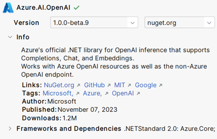 OpenAI recommends three NuGets from community implementations for direct access, all of them released (https://platform.openai.com/docs/libraries/community-libraries). But Microsoft – as we know them – still lags a little bit behind: the NuGet of OpenAI access via Azure is still a pre-release version, which is nevertheless used a lot.